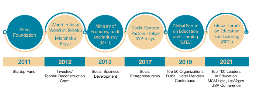 In the Fiscal Year 2013-2014, we were honored with an award from the Ministry of Economy, Trade, and Industry for our efforts in Social Business Development, marking a pivotal moment in our journey. From that milestone onward, our success has continued to grow, expanding our reach, impact, and commitment to educational innovation and social transformation.