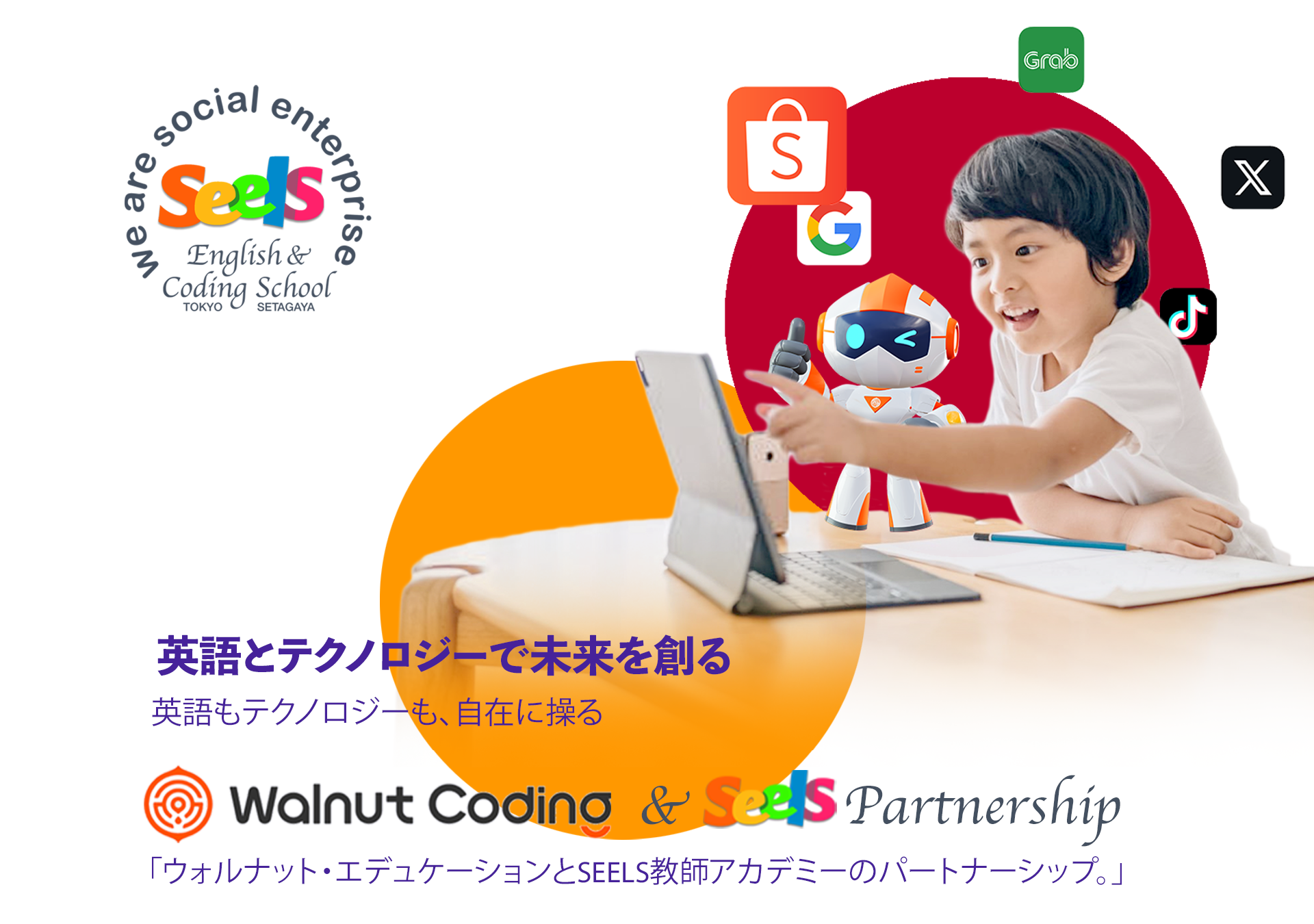Walnut Education + SEELSでは、英語力とコーディングスキルを融合し、AI時代のグローバルな社会で活躍できる未来の人材を育成します。楽しく、インタラクティブなプロジェクトベースの学習を通して、子どもたちは英語とテクノロジーの両方を自然に習得し、21世紀をリードするスキルを身につけます! 💡 なぜ英語とコーディングを一緒に学ぶのか? デュアルラーニングで未来を切り拓こう!